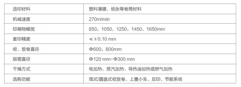 收放卷:內置式雙工位收放卷,氣脹軸裝卸料,更換快捷,安全可靠,高速不停機換料,自動裁切。 印刷:縱向自動套色及預套準裝置,提高套印精度,刮刀竄動為雙軸竄動式,獨.............